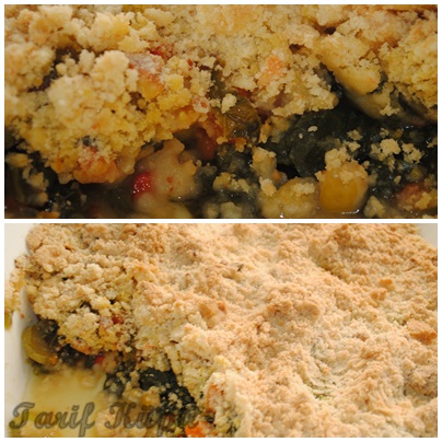 Crumbleyi yaklaşık 20 dakika veya kırıntıların rengi değişinceye kadar pişirelim.